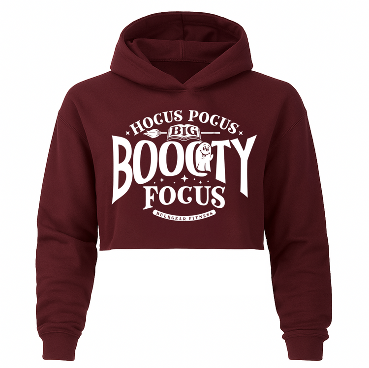 "BOOOTY FOCUS" Hyper Crop Hoodie (BURGUNDY)