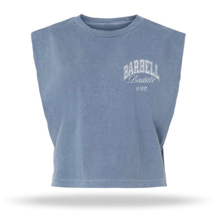 "BARBELL BADDIE" MUSCLE CROP (DENIM)