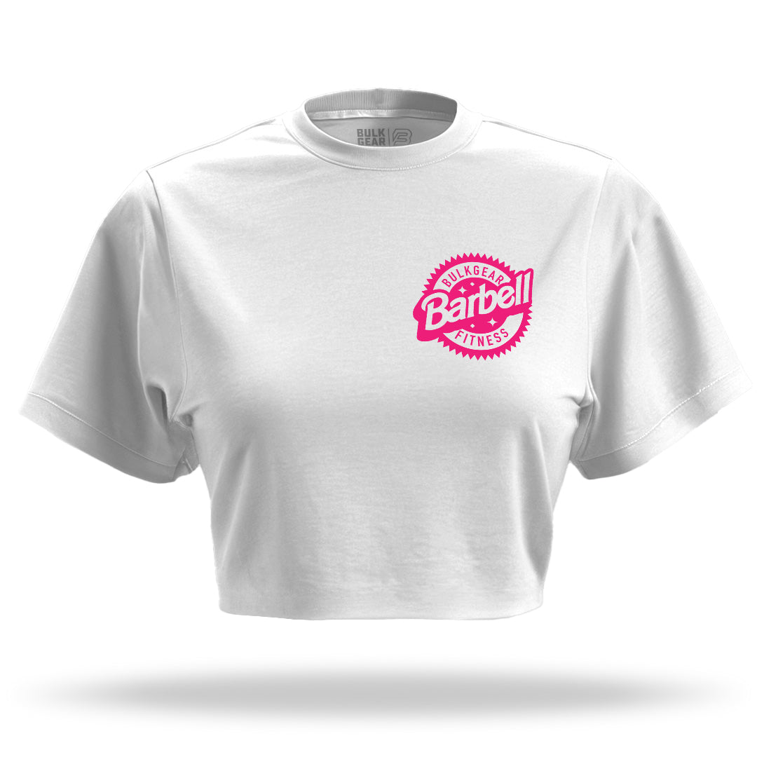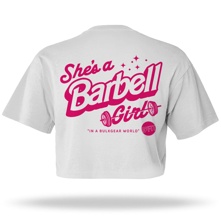 "BARBELL GIRL" Raw Edge Crop (WHITE)