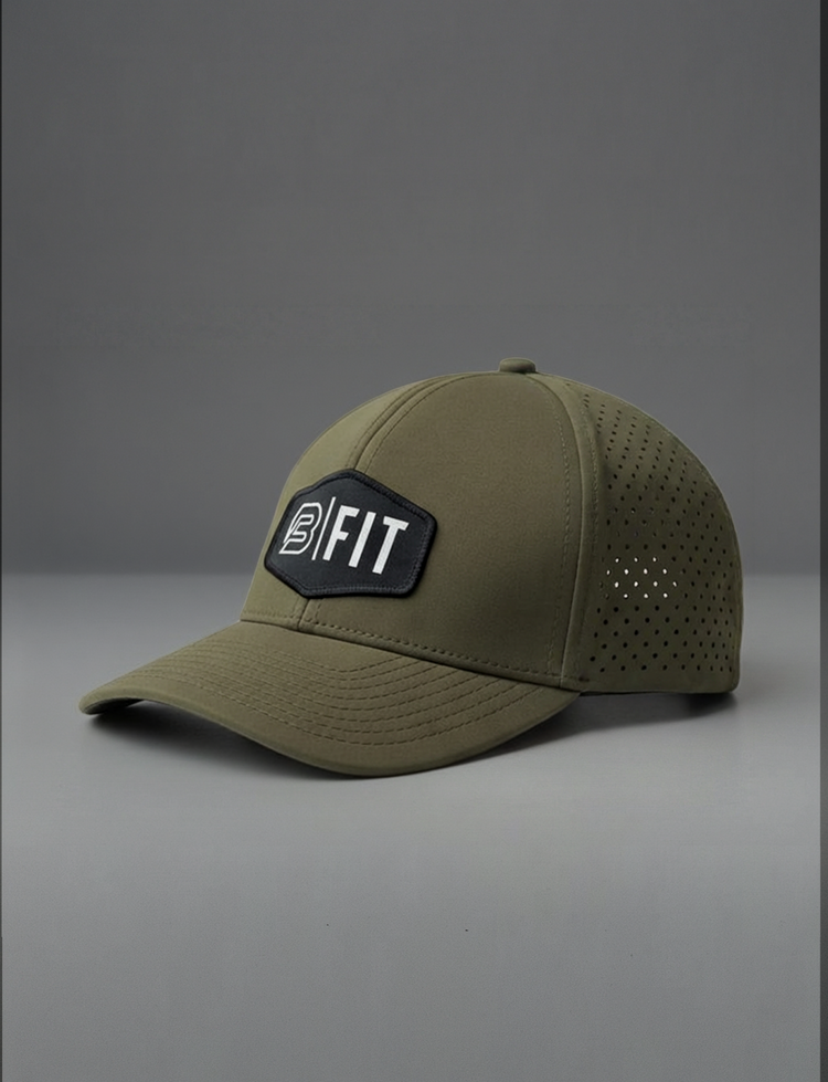Our 6-panel performance snapback hat features a Micro Woven Patch of our OG B-Fit Logo. It  has a curved visor and is constructed of water-repellent  antimicrobial, and moisture-wicking Material. These hats deliver comfort and durability for any activity.